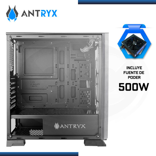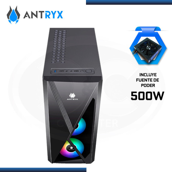 CASE ANTRYX EXTREME NEO II VIDRIO TEMPLADO + FAN ARGB x 2 CON FUENTE 500W USB 3.0/USB 2.0 (PN:AC-XN02KR1-500CP)