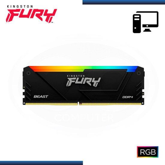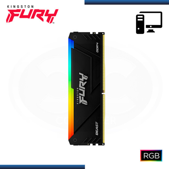 MEMORIA 8GB DDR4 KINGSTON FURY BEAST RGB BLACK BUS 3200MHz (PN:KF432C16BB2A/8) - Potencia y Estilo RGB para tu PC Gamer