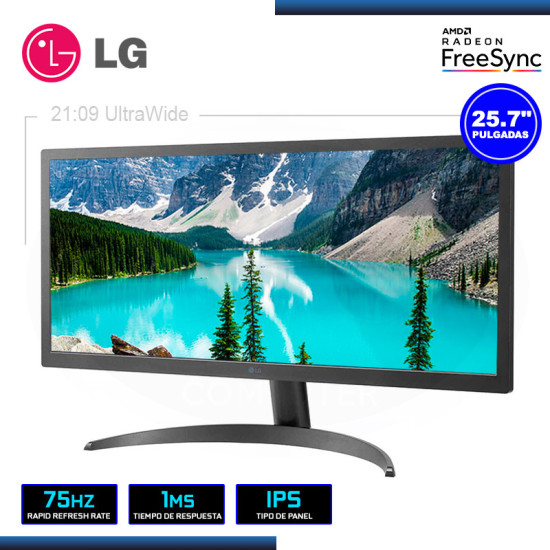 MONITOR LED 25.7" LG 26WQ500-B ULTRAWIDE 2560x1080 HDMI 1MS/75Hz/FREESYNC: Tu Ventana Ultraancha a la Productividad y Entretenimiento