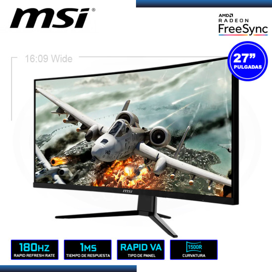 MONITOR LED 27" MSI G27C3F CURVO 1920x1080 HDMI DP 1MS/180Hz/AMD FREESYNC: Inmersión Total en Juegos y Trabajo