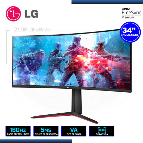 MONITOR LED 34" LG 34GP63A-B CURVO ULTRAGEAR 3440x1440 HDMI DP 5MS/160Hz/FREESYNC PREMIUM: Tu Ventana Inmersiva al Gaming y la Productividad