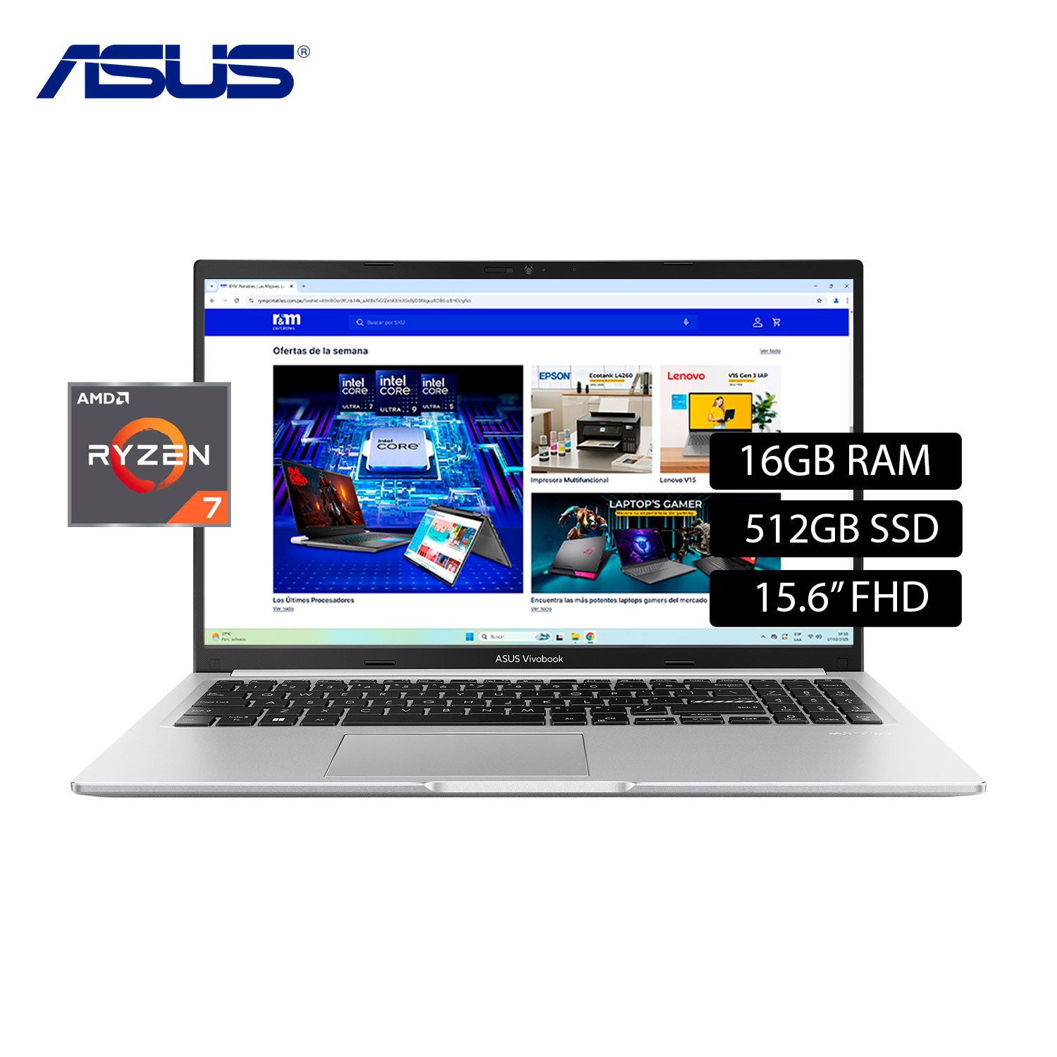 Laptop Asus Vivobook 15 M1502YA-NJ572W Ryzen 7 5825U Ram 16GB Disco 512GB 15.6″ FHD Windows 11 (90NB0X22-M00VA0)